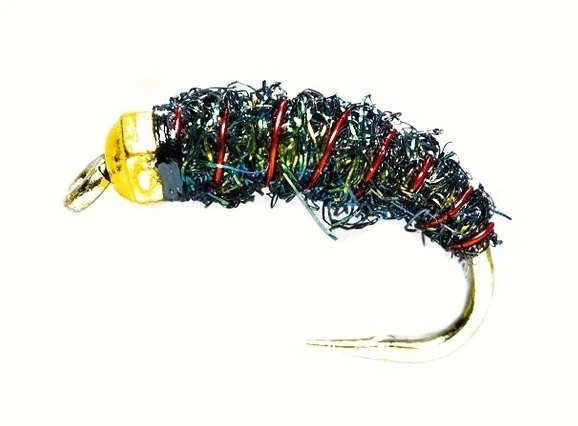 Glister gives the appearance of peacock herl with natural shimmer, this simple bug can be taken for a small cased caddis or shrimp, it features a Tungsten Bead to help get it right down to fish quickly.
